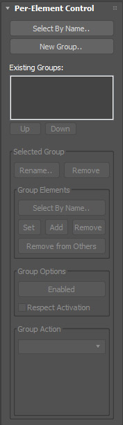 By Gizmo: Enables element activation by spherical sub object gizmo. All elements inside gixmo will be played while other will stay intact. Sub Object gizmo can be animated.