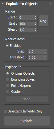 Selected Elements Only: Explode only selected elements. Elements can be selected in Elements sub object mode.