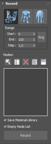Reload: Reload already loaded cache file. Useful in case it was rerecorded in other launched 3ds Max.